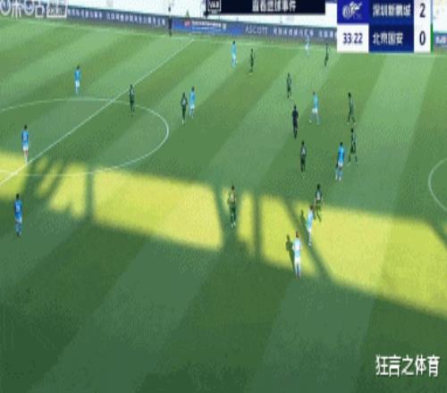 第22分鐘,北京國安中路推進,達萬擺脫防守過頂挑傳,林良銘插上突入禁區(qū)左側獲得很好的機會,然而他球沒有停好,被季家葆將球撲出底線。第32分鐘,國安右路防線又被深圳新鵬城輕松洞穿,姜至鵬直塞,加西亞輕松地后排超車超過王剛得球突入禁區(qū)左側,加西亞精準橫傳中路,韋斯利后排跟進,國安這邊完全沒人盯防韋斯利,韋斯利小禁區(qū)前沿超近距離單刀輕松推射得手,深圳新鵬城2:0領先。2球落后的北京國安如夢方醒,隨后展開了猛烈的反撲,第36分鐘,國安左路快速反擊,林良銘插上突入禁區(qū)斜塞中路,法比奧后排跟進推射空門得手,只不過林良銘插上時越位在先,進球被吹掉。